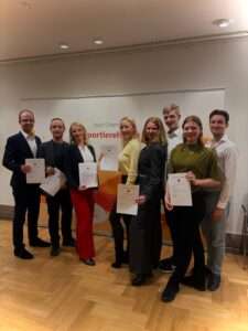 Am Freitag ging es dann weiter mit den Ehrungen der „älteren“ Sportlerinnen und Sportler, darunter wieder viele TTC Tänzerinnen und Tänzer. Neele Neunzig und Philipp Heitmann wurden an diesem Abend für ihren Gewinn des Norddeutschen- und des Landesmeistertitels in der HGR II A Standard bei der GLM Nord vor heimischem Publikum im September in Oldenburg geehrt. Janina Christiansen und Lukas Blum für den Gewinn des Norddeutschen- und des Landesmeistertitels in der HGR C Standard im Mai in Lübeck und Luzie Böckermann und Christoph Struth für den Gewinn des Landesmeistertitels in der HGR D Standard, ebenfalls in Lübeck. Meret Preuß, die leider aus beruflichen Gründen zwischenzeitlich Oldenburg verlassen hat und nicht mehr für den TTC startet, erhielt die Ehrung für den Gewinn der Norddeutschen- und der Landesmeistertitel bei der GLM Solos in der HGR C Latein im Februar in Soltau und bei der GLM Solos in der HGR C Standard im September in Hamburg.