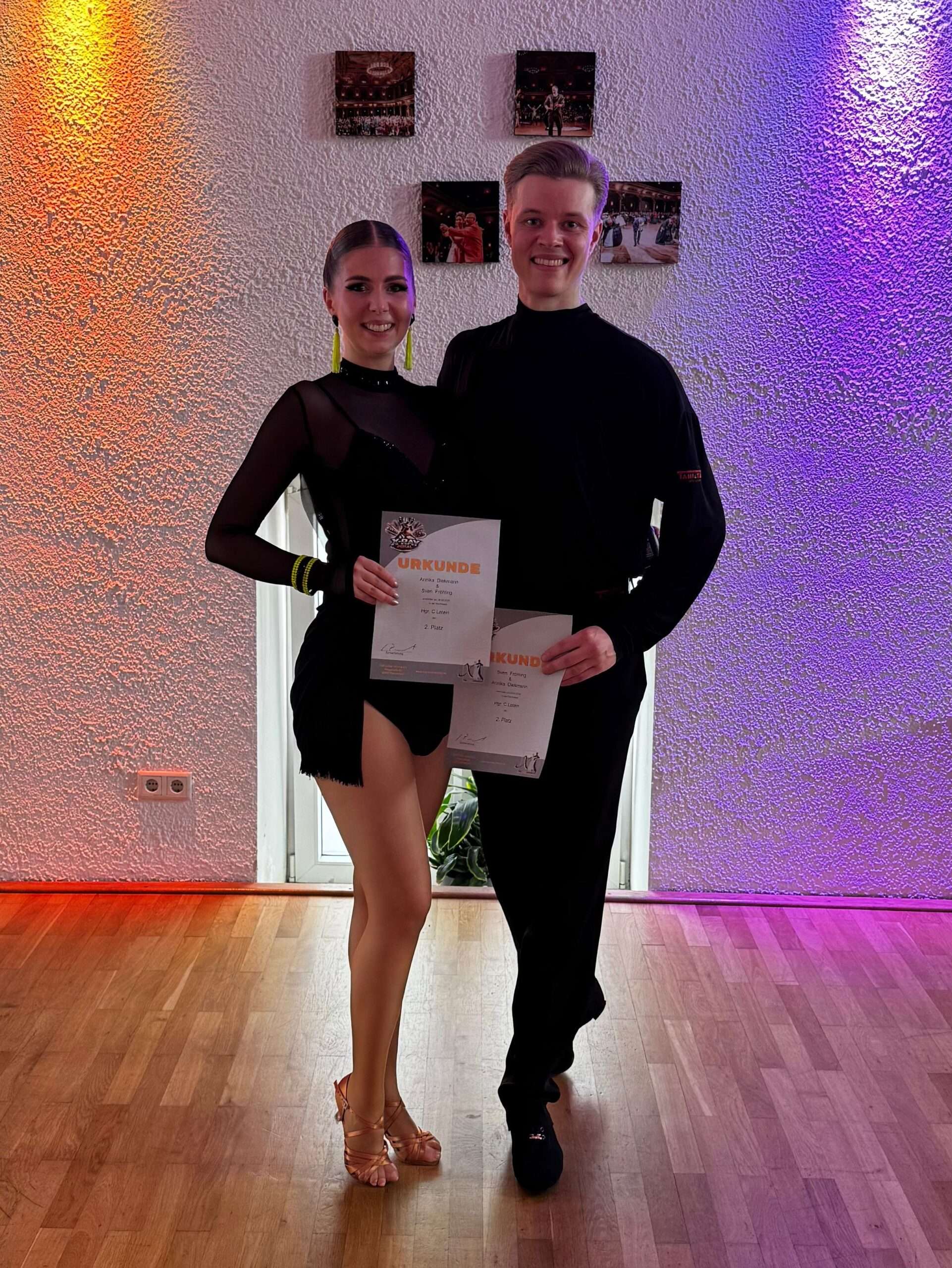 Für Sven und Annika hat sich die Teilnahme aber trotz allem gelohnt. Obwohl das Turnier ein echtes Ausdauertraining darstellte – sowohl in der Sichtungsrunde als auch im Finale gab es zwischen den einzelnen 5 Tänzen keine weiteren Pausen, nur die während des kurzen Applauses der Zuschauer und die Musik im Finale wurde um die 2 Minuten gespielt – , ertanzten die beiden sich den 2. Platz und sicherten sich damit eine weitere Platzierung.
