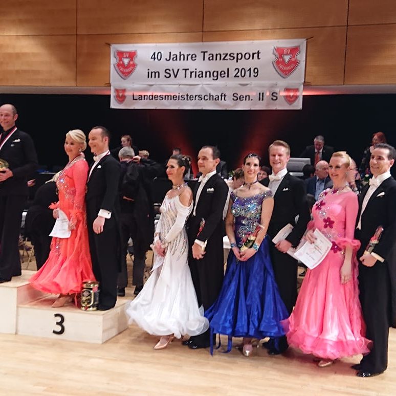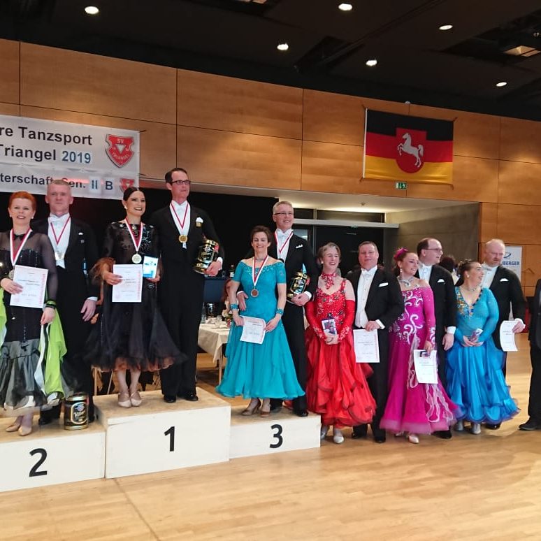 Aus Anlass ihres 40-jährigen Bestehens richtete die Tanzsportabteilung des SV Triangel Gifhorn am Samstag, dem 2. März, in der festlich geschmückten Stadthalle die Niedersächsischen Landesmeisterschaften der Senioren I und II B, Senioren II B und Senioren II S aus. Die Veranstaltung eröffneten die Paare der Sen I B, darunter Ulrich Denecke und Saskia Frerichs vom Tanz-Turnier-Club Oldenburg, die in der Endrunde in allen Tänzen unangefochten Platz zwei belegten und sich damit den Titel des niedersächsischen Vizemeisters sicherten. Ihre Vereinskameraden Thomas und Heike Schenkel ließen in der Sen II B ebenfalls keinen Zweifel an ihrer Leistungsstärke. In einem Feld von 15 Paaren ertanzten sie sich ebenfalls den zweiten Platz und den Titel des Vize-Landesmeisters. In der Sen II A konnten die beiden TTC Paare Sven Hoffmann und Sandra Noll, sowie Rainer & Gabi Stuth sich in dem starken Feld gegenüber leider nicht durchsetzen und sich nicht für das Finale qualifizieren. Auch in dieser Klasse ging der Vizemeistertitel jedoch nach Oldenburg, an Mike und Melanie Bühring von der TSA Creativ im GVO Oldenburg. In der Sen II S konnte mit Arndt-Ragnar und Verena Rhiemeier wieder ein TTC Paar ins Finale einziehen. In einem starken Feld von 17 Paaren konnten sich die Beiden am Ende den fünften Platz sichern.
