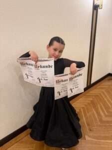 Bei den Kinder – und Jugend Solos D-A in den Standard- und lateinamerikanischen Tänzen am 25. April im TanzCentrum „Die 3“ des TSC Astoria Norderstedt zeigten unsere drei Solistinnen ausnahmslos herausragende Leistungen. Sofiia Skida, Valeria Ilyaich und Frieda Alma Bautor freuten sich über einen wahren Medaillenregen und viele tolle Platzierungen und Sofiia zudem über ihren Aufstieg in die Kinder B Standard Klasse.